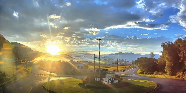 O entardecer visto do aceso ao município de Morro Grande é algo esplendoroso. A cidade é do extremo sul de Santa Catarina e está dentro do Geoparque Mundial da UNESCO Caminhos dos Cânions do Sul. Cidade pequena grnade riqueza.